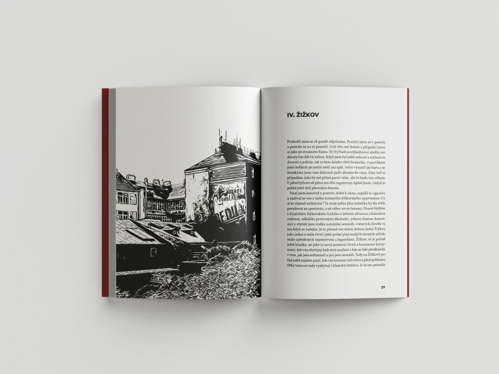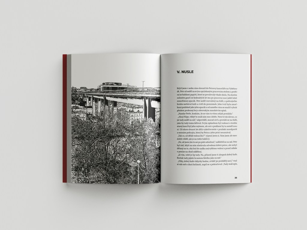Návrh knihy Vraždy na dvojce a doprovodných dárkových předmětů.